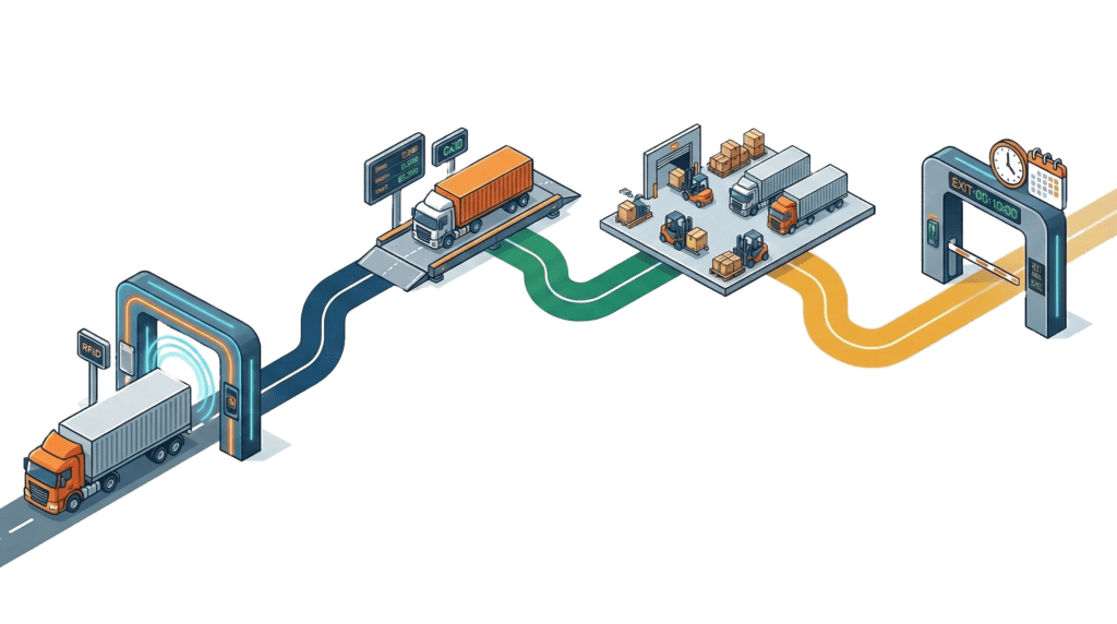 Track every vehicle from entry gate → weighbridge → loading bay → exit in real time.