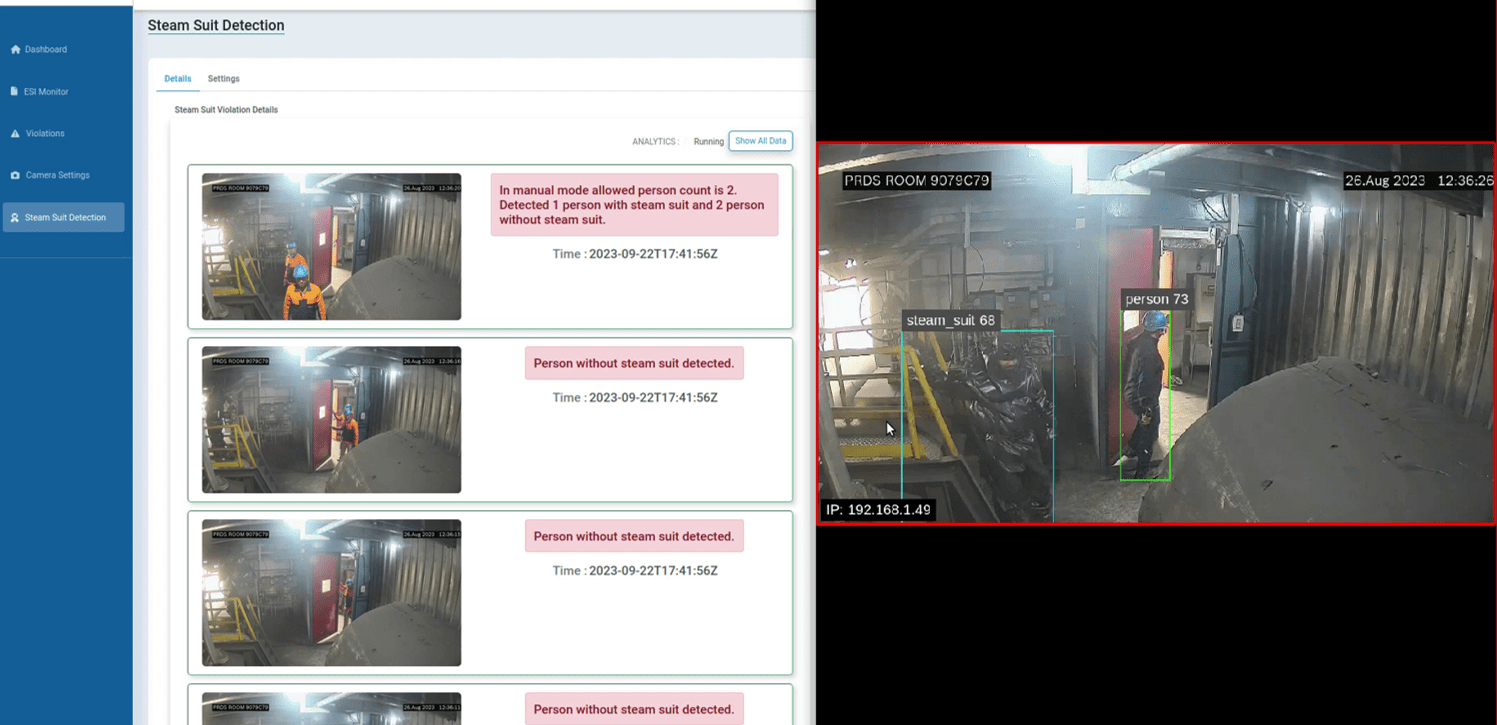 - Computer Vision: Using AI-powered video analytics, the system checks whether the operator is wearing the required steam-protection suit before handling the valve.